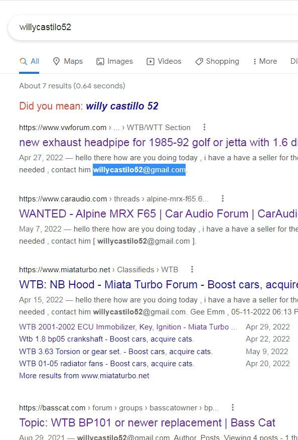 looked up email in google and you can see he posts in wtb sections all over saying he has seller for the part to email him
