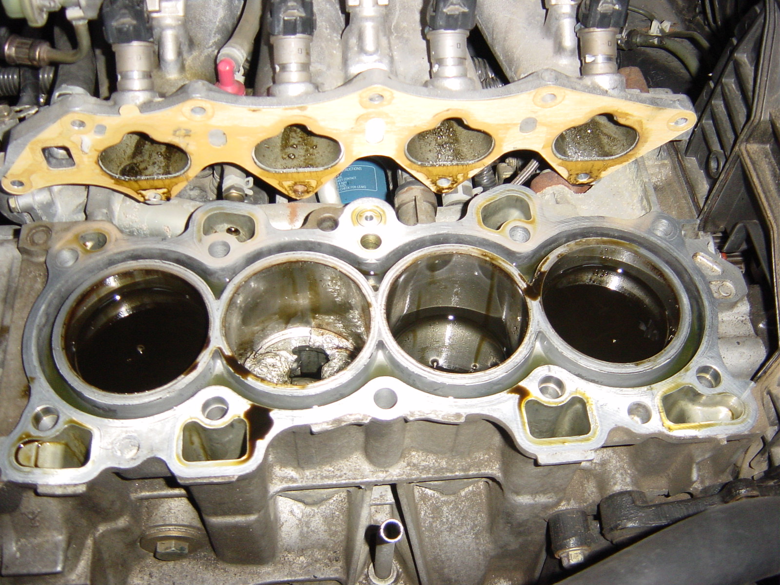 Black-hatch, pull the pistons, clean the oil off the cylinders, and take some more pictures.