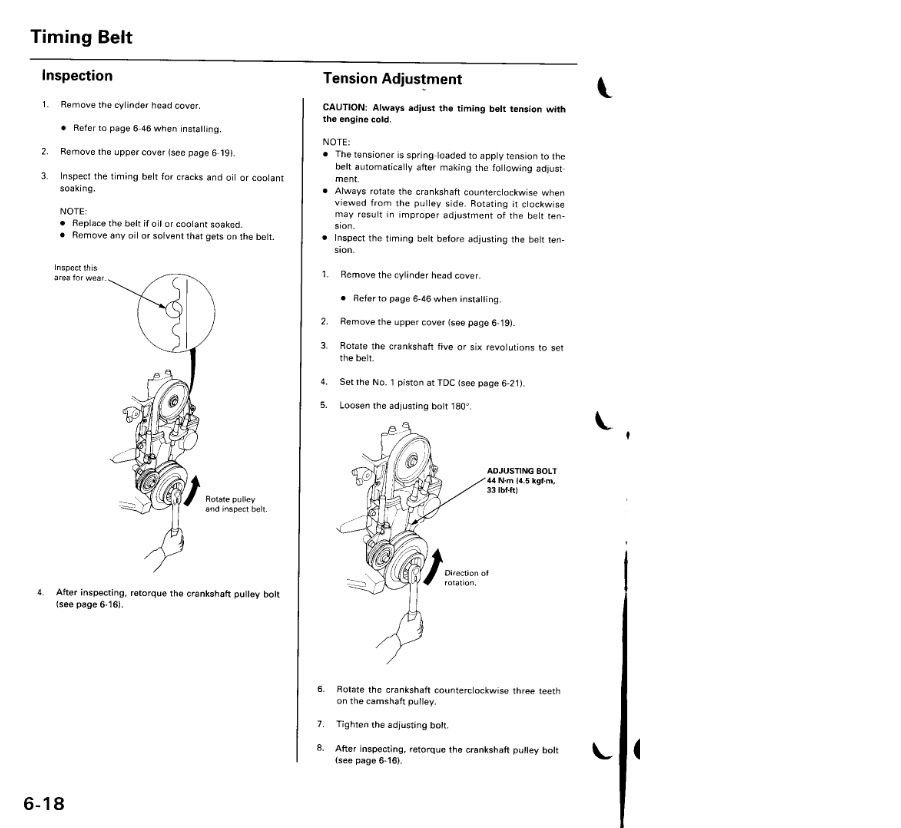 Del Sol, civic 1994: New Conitech Timing belt installed and reused tensioner and spring as it sounded fine when spun in hand. Now when it warms it sounds strange, a vibration noise (see video link below). I think it's too tight, the timing belt. I checked all drive belts and loosened and it's still sounding. The sound come from waterpump side (AISIAN pump, replaced). See pics please, showing I barely can get a 90 degree turn on the longbside and not much deflectuon from my extension pressing on slack side of the timing belt by firewall. I followed Eric the Car guys advice and held the cam while wrenching the crank... but just wondering your thoughts on troubleshooting, or next steps. I thought, just loosten and tighten the tensioner nut, but would that be right? Here is the sound it makes: Video