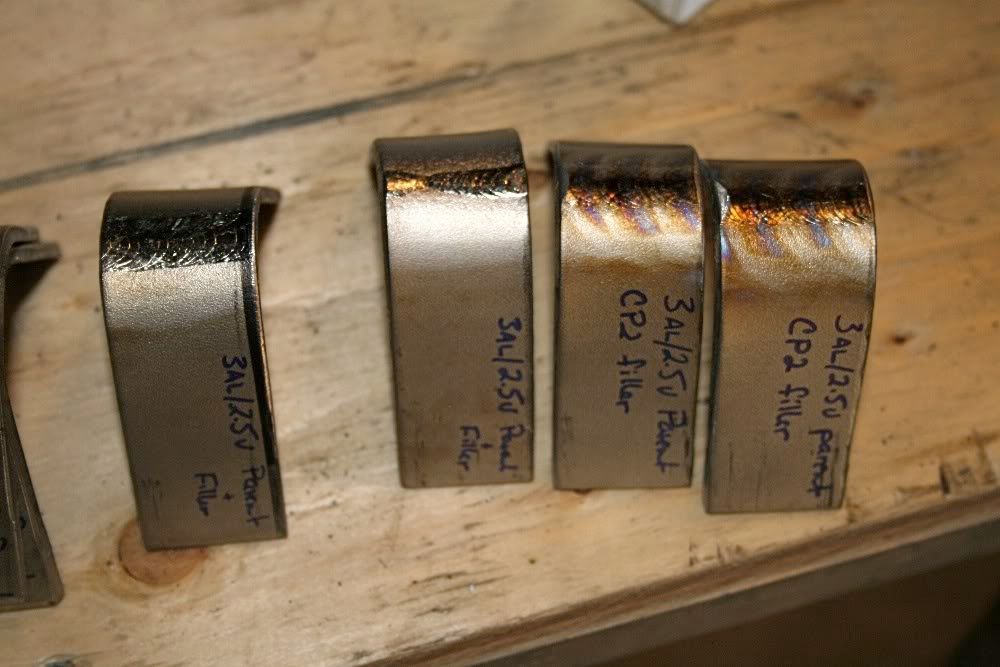 Here are a few of the many test welds. Welded Niobium, Titanium, Zirconium, and niobium/titanium alloys. All bend tested. Tried to get some fancy colours on them to see if slightly oxidized coupons will bend, and they do.