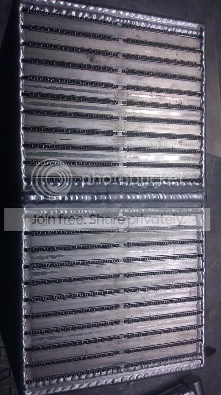 I had a local intercooler company build me a few tank setups back a few years ago and they were cutting down their cores from larger core stock. I dont remember them welding between the bars like that though. I know they pressure tested each unit to 150 psi post welding though.