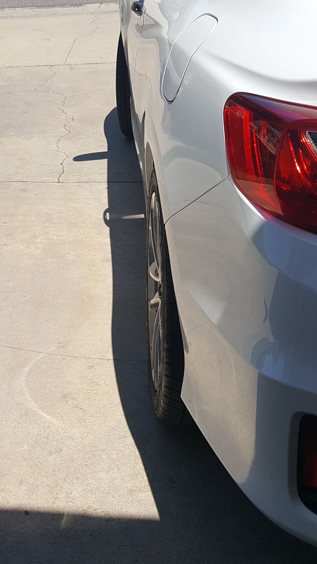 I own a 2014 Honda Accord Coupe ex-l 3.5L v-6 and put on a set of 25mm wheel spacers on the rear and the sides are not even. My passanger side wheel comes out farther than my driver side. I jacked back up and removed wheels and checked spacers and everything looks normal. Drives fine but have no idea why one looks so much bigger. Passenger side Drivers side