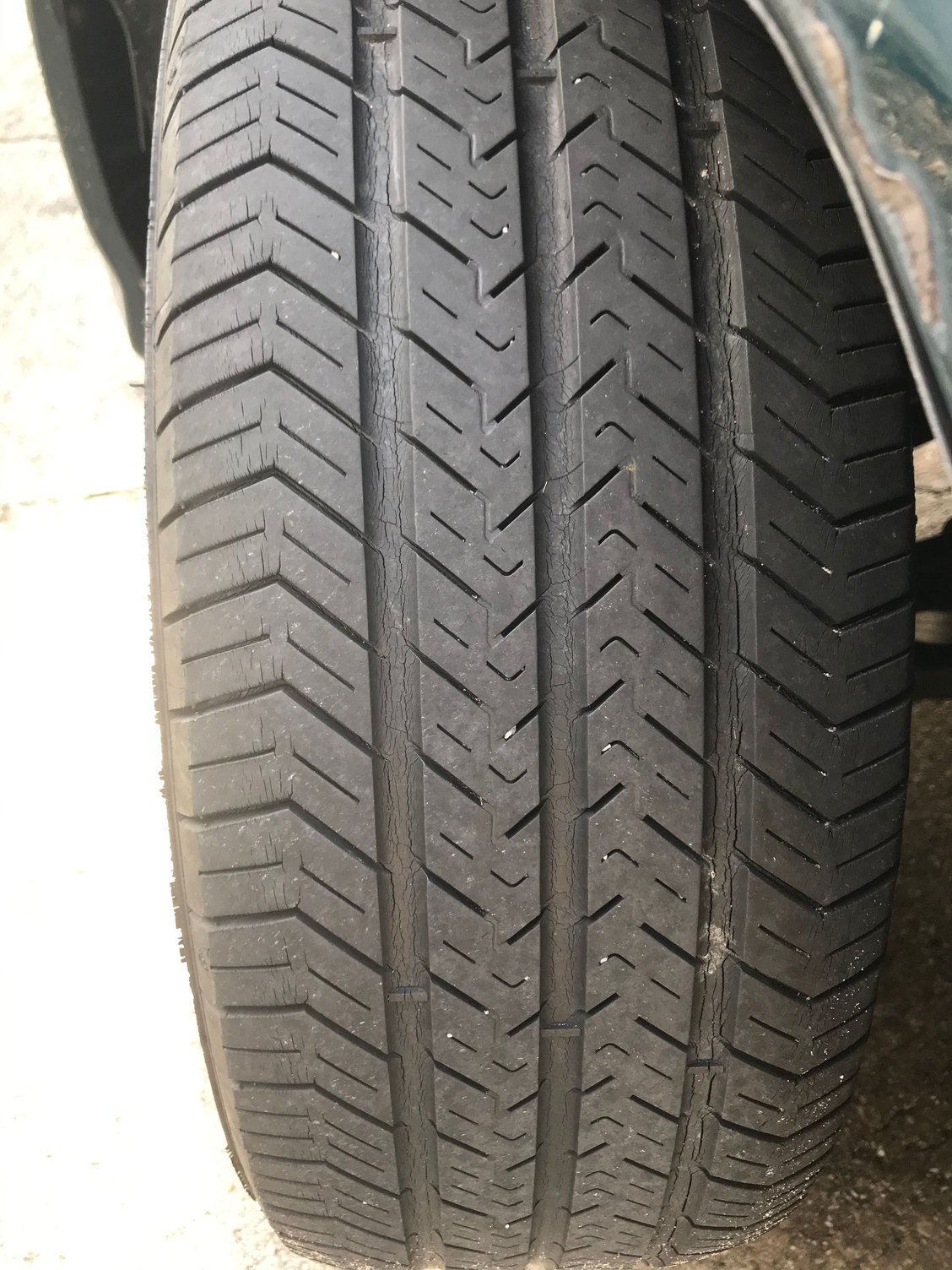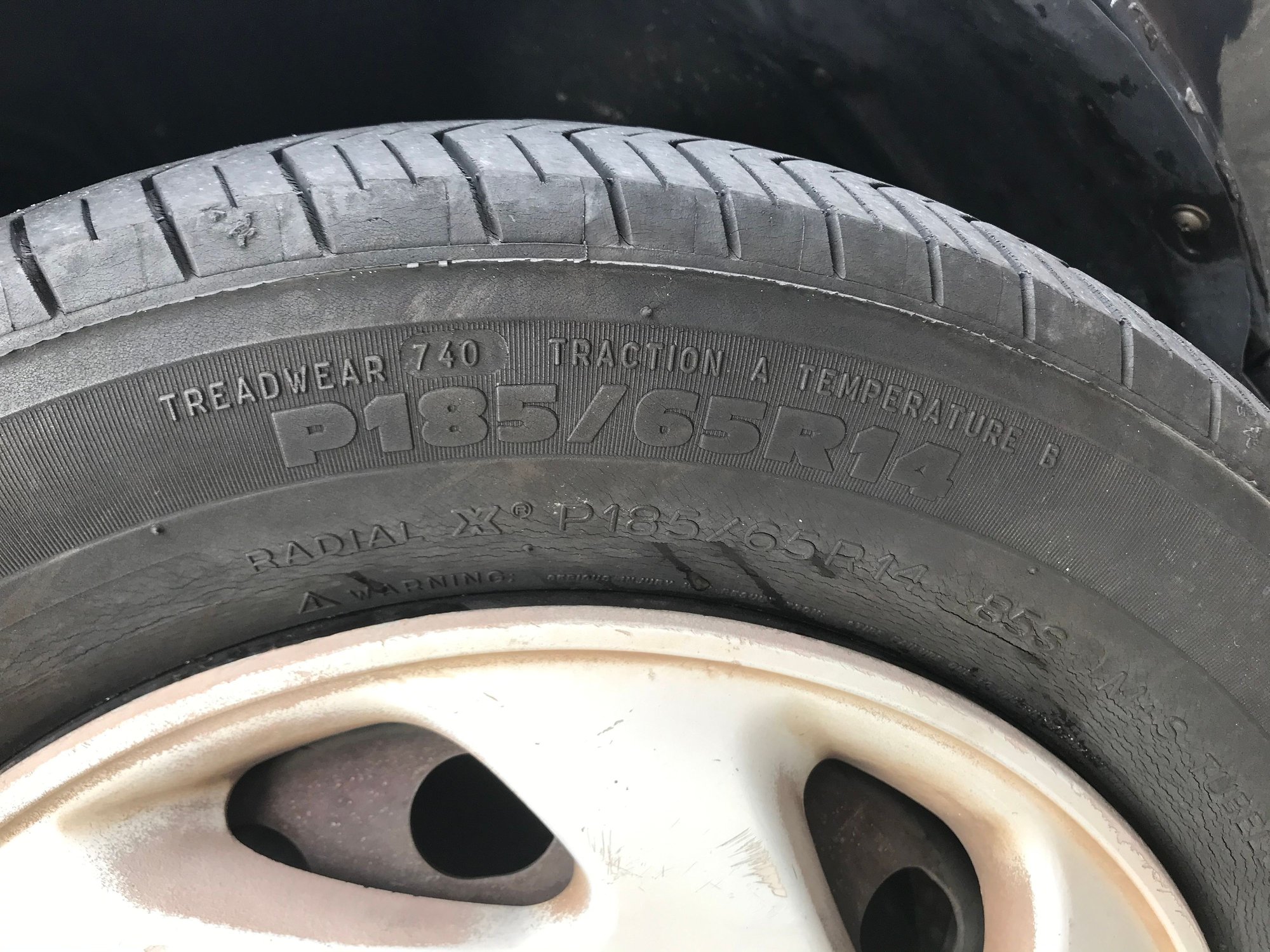 I bought the last 4 new tires (Michelin Defender 185/65R14 86T) at Costco, and yesterday they found a nail in the side wall of one, but they no longer carry 14" tires, let alone the same Michelin, which apparently has been discontinued, so they put on my spare, which I noticed has cracks (see attachments) on both the tread & side walls. The date code on the spare is 3206 (32nd week of 2006), so I'm thinking it may be time to replace it as well.
